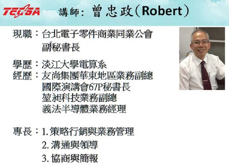 新春伊始,機不可失!台北市電子零件公會特聘兩岸名師暨業界資深前輩於3月份起陸續開辦超值充電站培訓課程,有效實用的課程將大大提升您的職場競爭力,成為CEO不可或缺的得力助手!歡迎企業廠商相關之擔當人員及主管或有興趣者踴躍報名參加。
