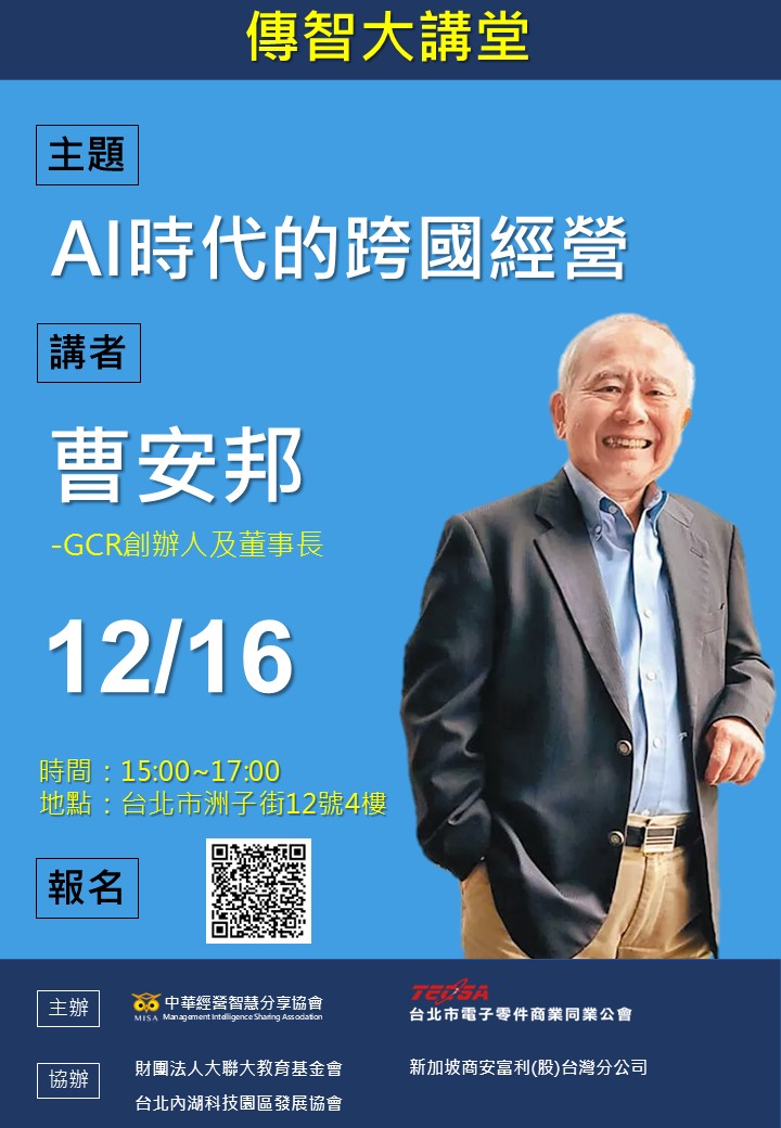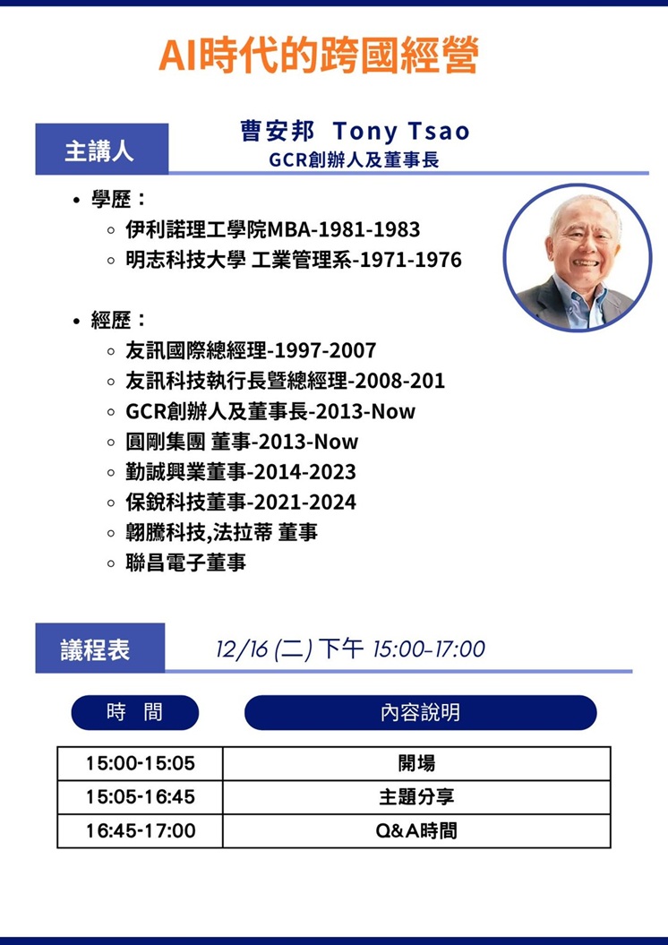 本次傳智大講堂特別邀請,曾帶領友訊科技在巴西、印度等新興市場成功轉型,
